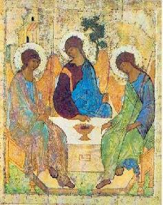 О том, что Бог – Пресвятая ТроицаБывает так: задашь кому-нибудь вопрос: "Вы верите в Бога?", а человек отвечает: "Да, наверное, есть Что-то, какой-то Высший Разум, какая-то Высшая Сила". И сразу кольнет сердце, резанет по слуху неправильное, неподходящее слово "Что-то". Нет, так про Бога сказать нельзя, Он - не Что-то". Про Него обязательно надо говорить Кто, а не Что. Вы, конечно, понимаете различие между личностью и неличностью. Вот идет мальчик, он про себя знает, что он есть, он себя может назвать "я", он умеет мыслить, любить, радоваться, удивляться. Он - личность. А вот по комнате от батареи распространяется теплота, она ничего не знает про себя, не думает и не чувствует. Вот поэтому теплота - не личность, а просто энергия. Мы уже говорили не один раз о том, что Бог находится везде, во всех местах сразу, одновременно - и здесь, и за тысячу, и за миллион километров. Может быть, поэтому некоторые люди и останавливаются на таких словах, как "Мировой Разум", "Высшая Сила", как бы боясь, стесняясь произнести: "Небесный Отец, Спаситель, Господь мой и Бог мой". Но Бог - не безликая энергия, как, например, теплота. Он любит нас, любит и продумывает мир. Так часто люди, когда хотят представить Бога большим, чем Личность, на деле представляют меньшим. А может быть, представление о личности очень тесно связано в нашем сознании с внешним человеческим обликом? И, возможно, поэтому, когда некоторые люди начинают понимать, что Бог - это не старец на облаке с человеческим лицом, руками, ногами, что Бог - это невидимый Дух, то при этом теряют и понимание Бога как Личности. Но ведь личность - это не обязательно человеческий облик, это сознание, любовь, воля. Святая Библия и Церковное Предание учат, что Бог - единое живое Существо в трех Лицах, Верховная Личность, Бог - Пресвятая Троица. Посмотрим на икону "Троица" Андрея Рублева. В центре - Первое Лицо Пресвятой Троицы - Бог Отец, справа от Него (по-славянски "одесную") - Бог Сын, Второе Лицо Пресвятой Троицы, слева - Третье Лицо Пресвятой Троицы - Бог Дух Святой. И вот самый главный догмат православного христианства, то есть самая основная и святая мысль православия в том, что это не три Бога (так утверждать – грех многобожия), а единый Бог в трех лицах (по-гречески "ипостасях"). Чем дольше смотрим на эту икону, тем больше хочется смотреть на нее: фигуры Ангелов легки, стройны, воздушны; зеленый цвет в их одеждах - как сочная шелковистая трава, синий - как множество васильков, а золотистый, которого больше всего на иконе, - как поток ласкового солнечного тепла. Но, взирая на икону, мы не должны забывать, что Бог на самом деле, конечно, так не выглядит, Бог невещественен и бестелесен. Но, чтобы быть ближе и понятнее людям, Бог иногда являлся некоторым из них видимым образом. Например, Бог выводил людей из плена и шел перед ними в виде огненного столпа. А праотцу Аврааму Бог явился в виде трех Ангелов. Прочитав об этом в Библии, иконописец Андрей Рублев и написал икону "Троица". Но как же так может быть, что Бог Отец, Бог Сын и Бог Дух Святой -не три Бога, а один Единый Бог, как может быть Один в Трех и Три в Одном? Тайна Пресвятой Троицы непостижима человеческим разумом, и ответить исчерпывающе на этот вопрос невозможно. Но, чтобы помочь нам к этой тайне немножко приблизиться, Бог дал нам подсказку. Эта подсказка - наше яркое солнце. Солнце - это раскаленный плазм