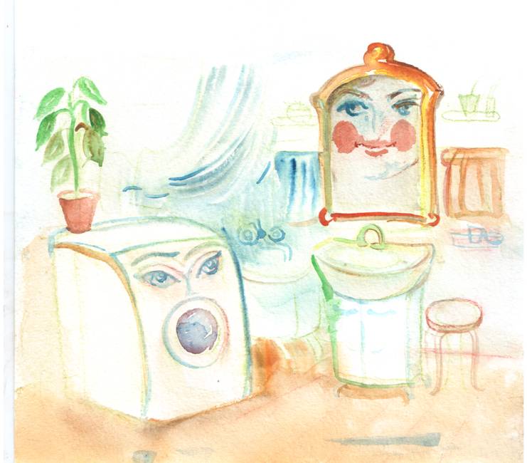 В одну квартиру привезли новенькую стиральную машину. Не успела она познакомиться со своими новыми соседями, обитателями ванной комнаты: кранами, ванной, раковиной и зеркалом; как в неё уже заложили белье, засыпали порошок и включили. Машина зашумела, затрещала.
